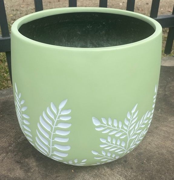 Green with White leaves indented Size 1: 54 dia x 44 high Size 2: 44 dia x 38 high Size 3: 35 dia x 31 high Size 4: 27 dia x 25 high